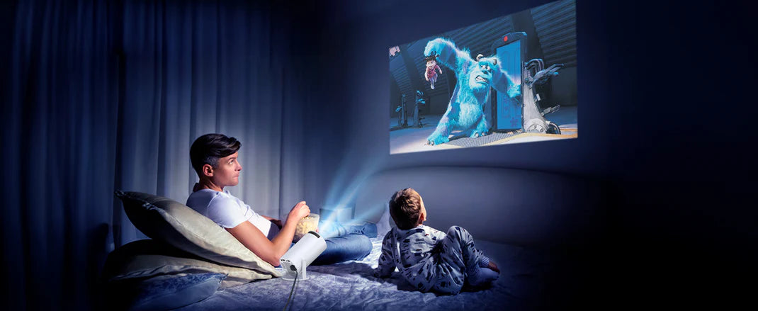 Perfect for outdoor movie nights with its bright display and portable design.