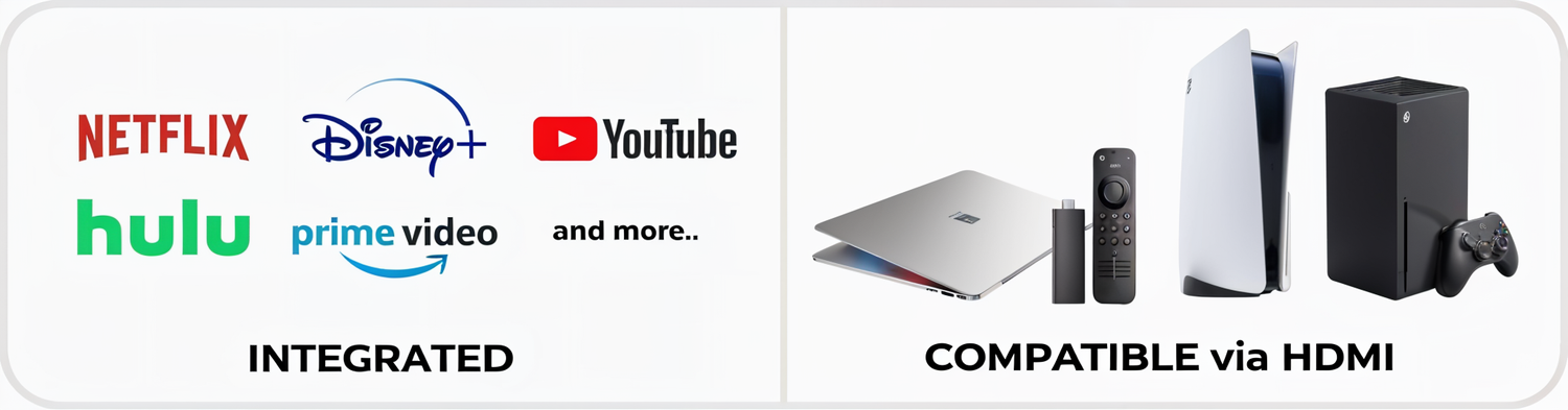 Enjoy Netflix, Disney+, YouTube, and more on the Rensyn Pro Projector. Please note that streaming service subscriptions are not included and must be purchased separately.